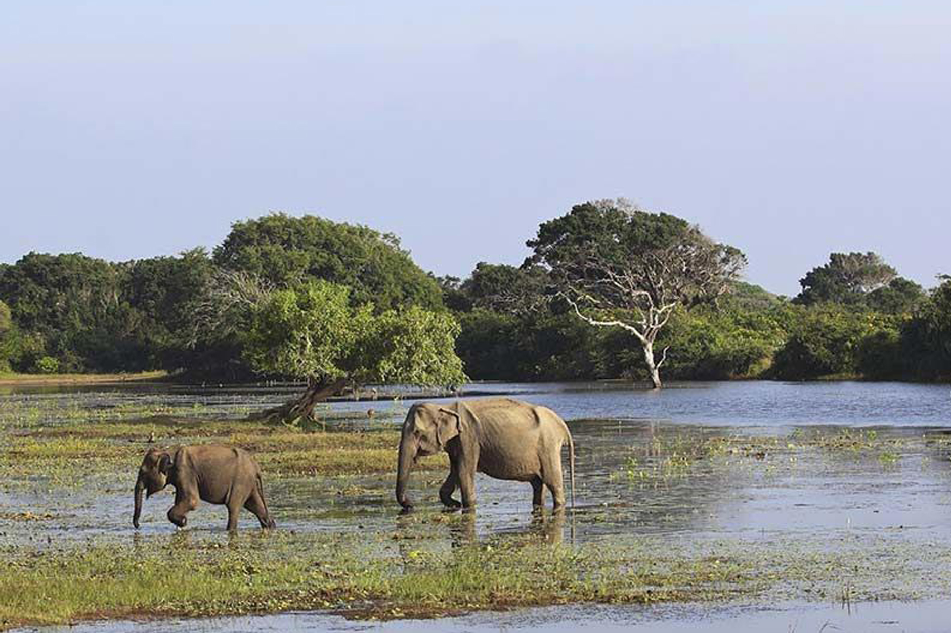Gal Oya National Park is known for its resident elephant herds, flourishing birdlife, and 32 species of mammal including langurs, toque macaques, leopards, sloth bears, wild boar, water buffalo, and deer.